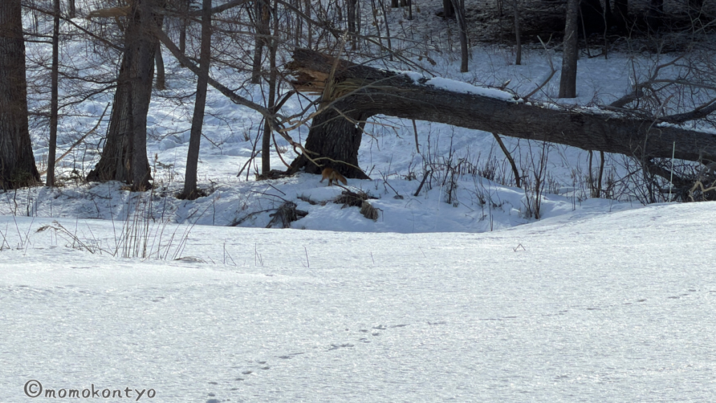 遠めだが真ん中にキツネが写っている。この距離でも目が合った。