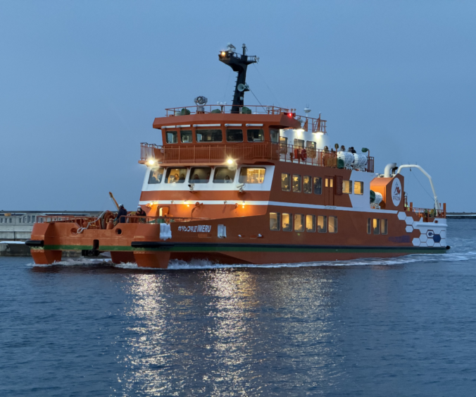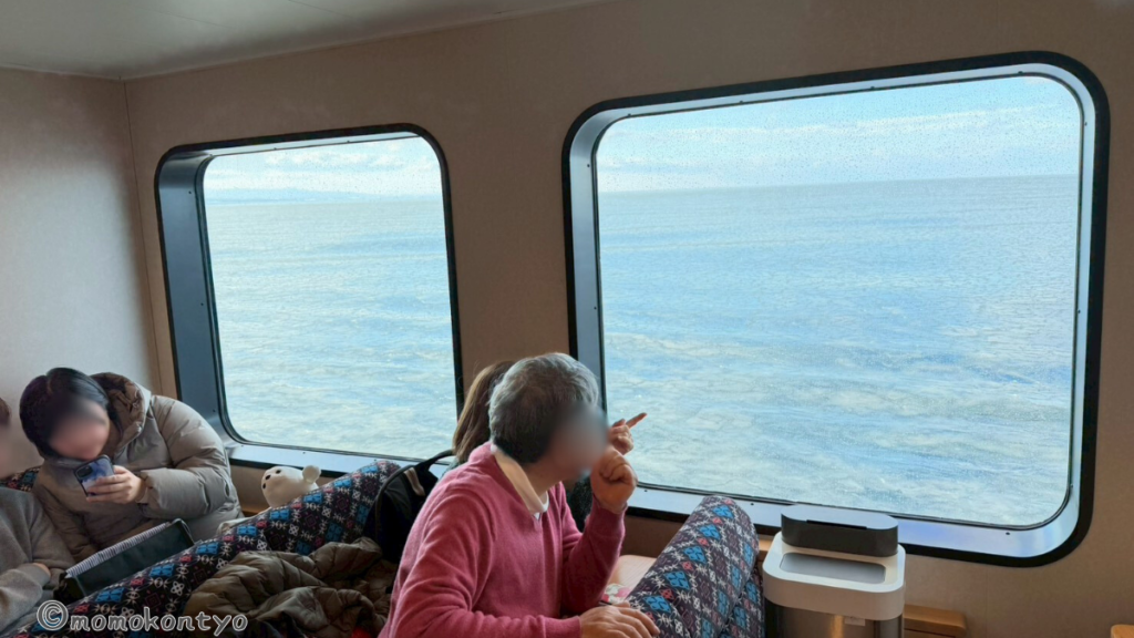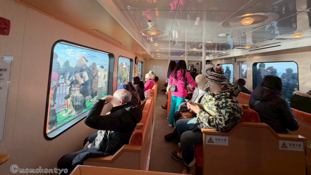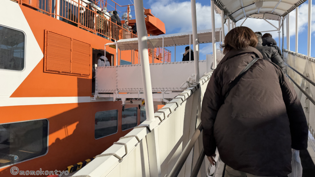 さっそく乗船!屋外デッキはかなり寒いので、防寒はしっかりと。