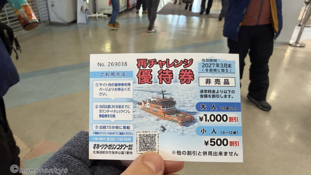 それでも、「流氷ナシ」という公式判断にしてもらえたので、チャレンジ券がもらえました。