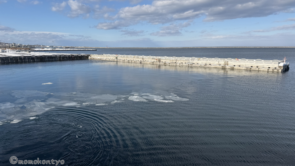 漁港内には流氷?のようなものが、、、どこまで見れるか楽しみ。