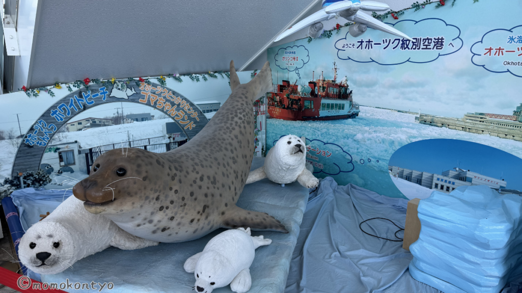 空港からすでにアザラシ推し!紋別はアザラシの街