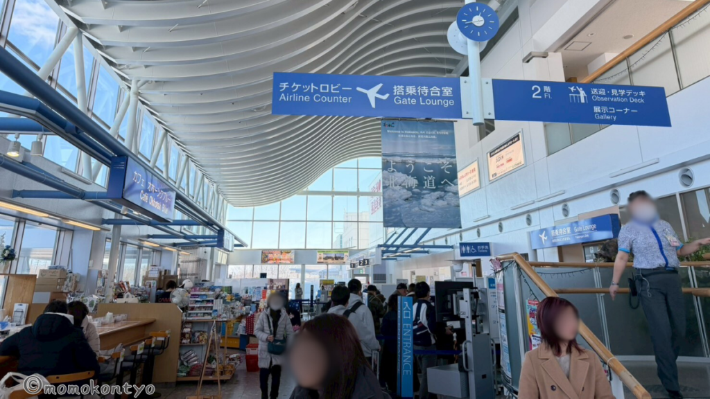 紋別空港は非常にコンパクト、お土産屋と軽食コーナーがある。