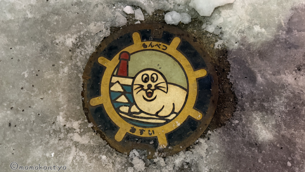 町中のマンホールにもアザラシが!